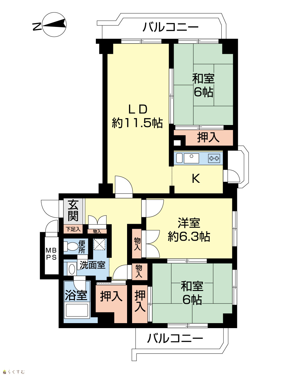 3LDK (和室:6畳、6畳) (洋室:6.3) LD11.5 |