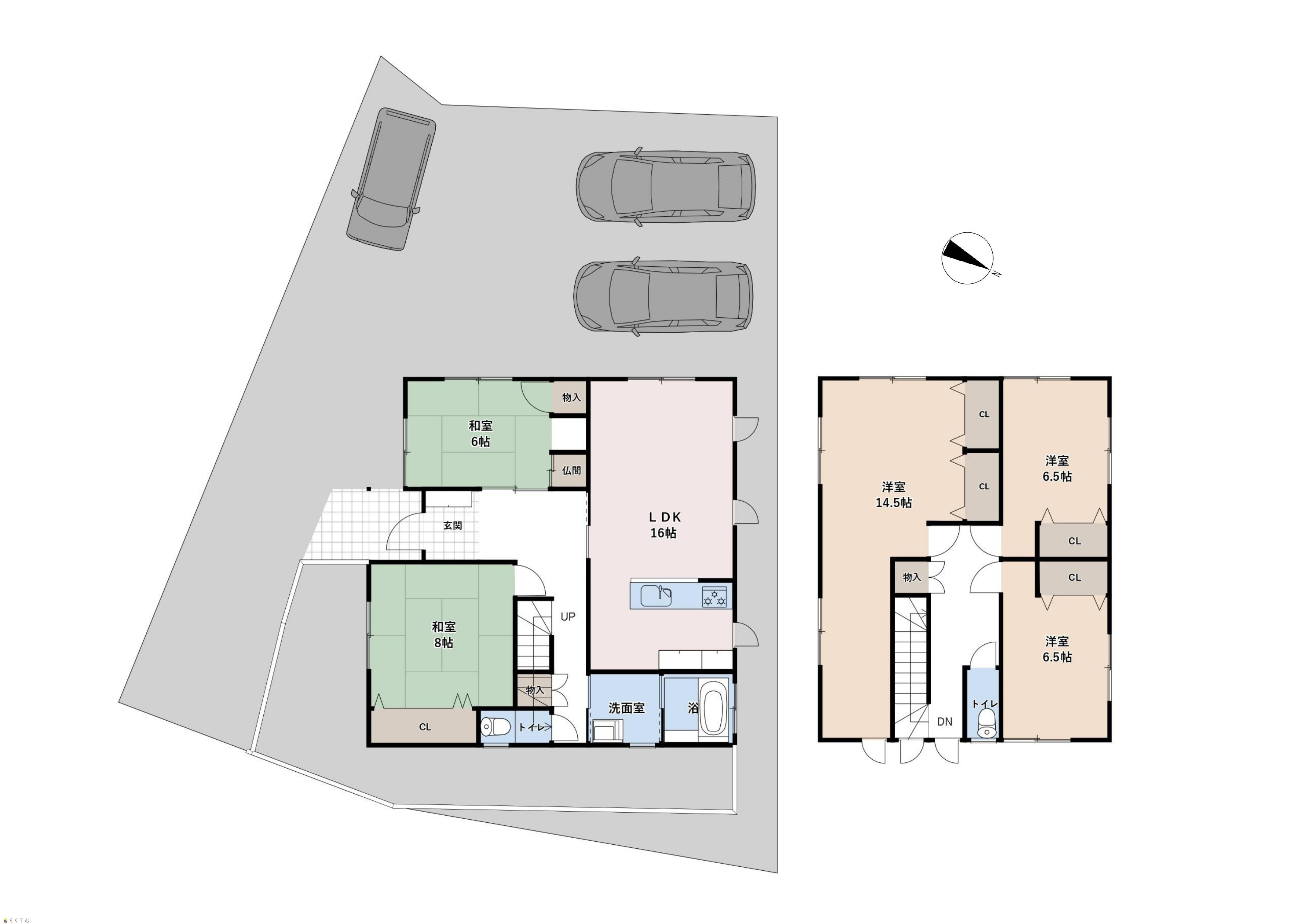 5LDK (和室:8畳、6畳) (洋室:14.5、6.5、6.5) LDK16 |