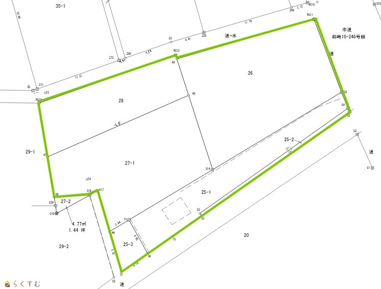 | 形状 | 間口 12.9m × 奥行 37.5m | 道路 | 柏崎市道 |