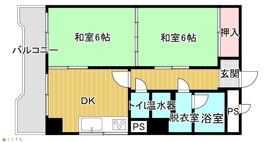 | 間取り | 2DK (和室:6畳、6畳) | ||