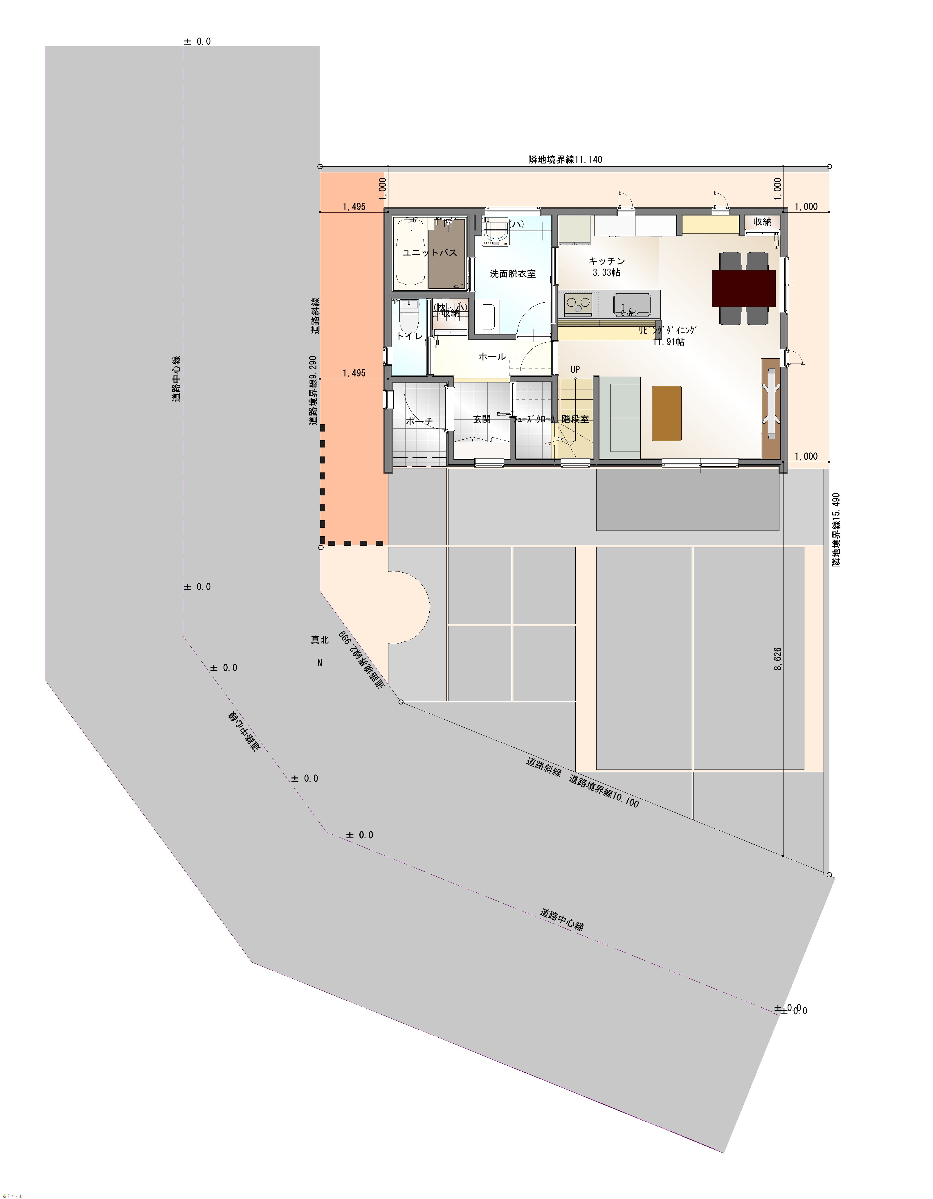 | 建物面積 | 1階 44.71㎡/ 2階 47.2㎡/ 計 91.91㎡ /27.8坪 | ||