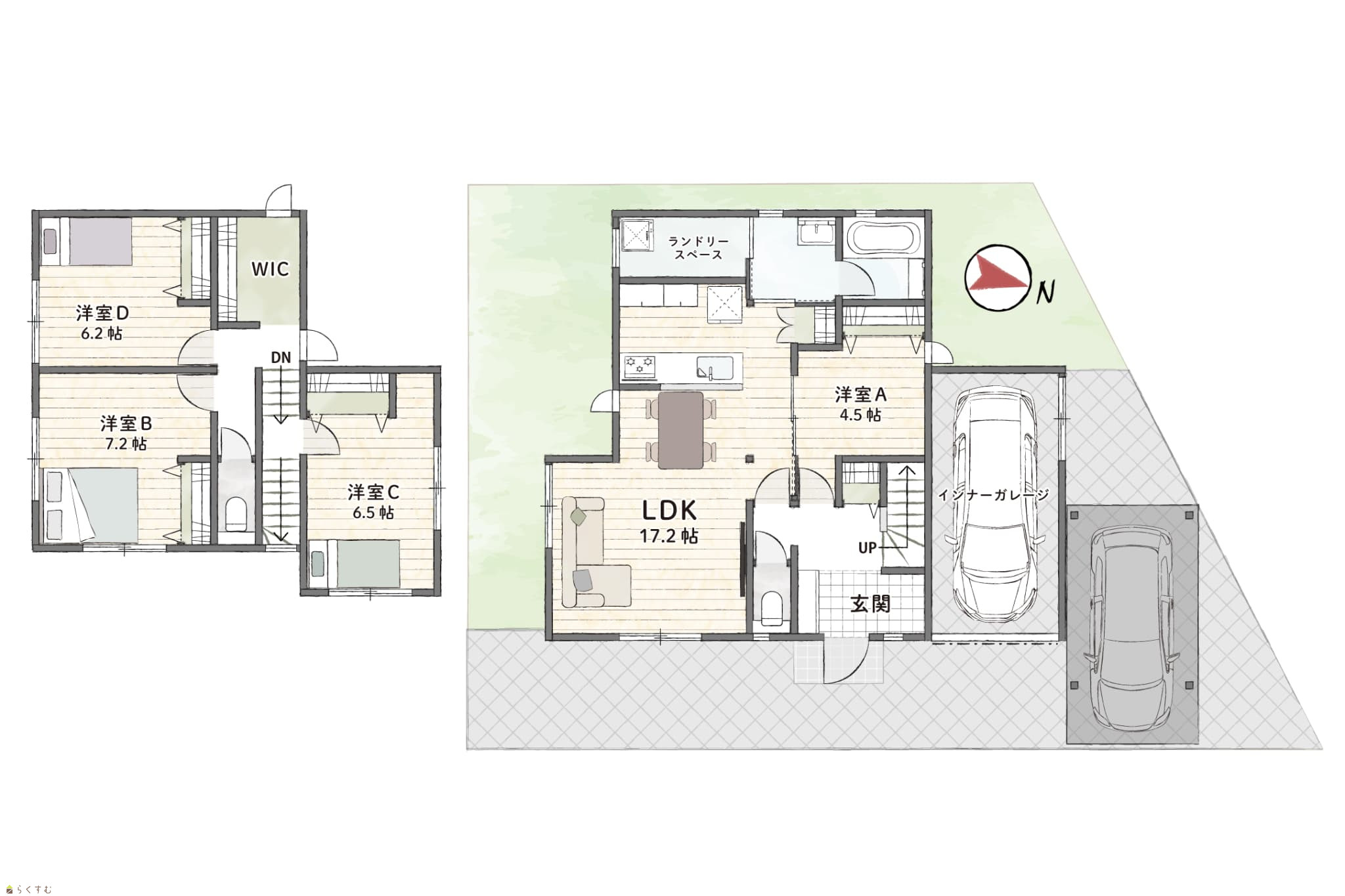 間取り 4LDK (洋室:4.5、7.2、6.5、6.2)