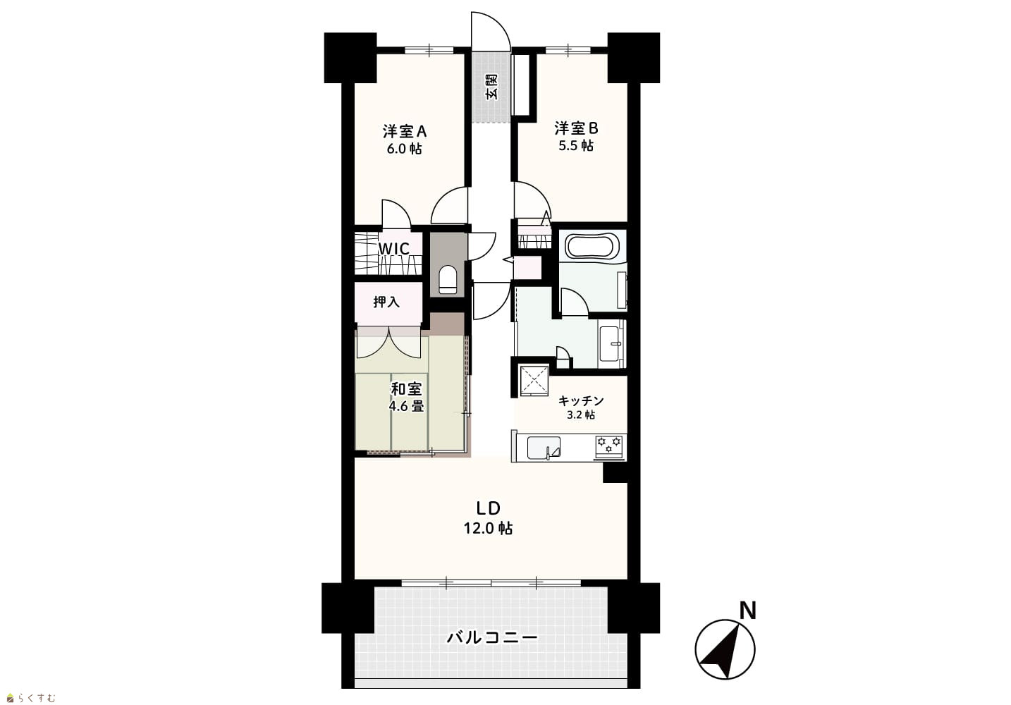 3LDK (和室:4.6畳) (洋室:6、5.5) LDK15.2 |