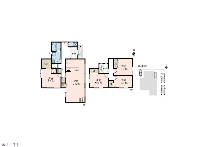 4LDK (洋室:7.5、6.2、6.0、5.0) LDK17.5 |