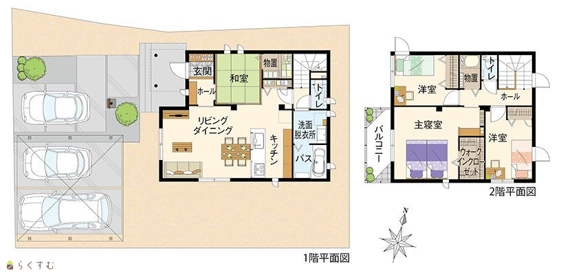 | ◆オススメPoint◆ 1階と2階の物置など、豊富な収納が魅力 /お布団を干すのに便利なバルコニーあり /主寝室内の書斎コーナーは趣味やリモートワークに大活躍 | |||
