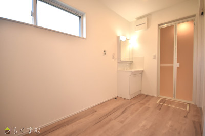 | 広々とした洗面脱衣室は物干しスペースとしても利用可。2階洋室にウォークインクローゼット完備で収納スペースも充実。 家族同士のコミュニケーションが取りやすい対面キッチン、リビング階段。 | |||