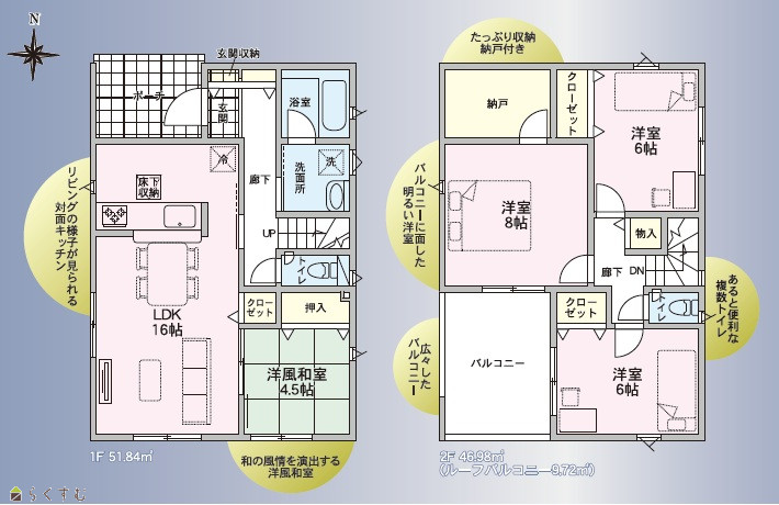 | 建物面積 | 1階 51.84㎡/ 2階 56.7㎡/ 計 108.54㎡ /32.83坪 | ||