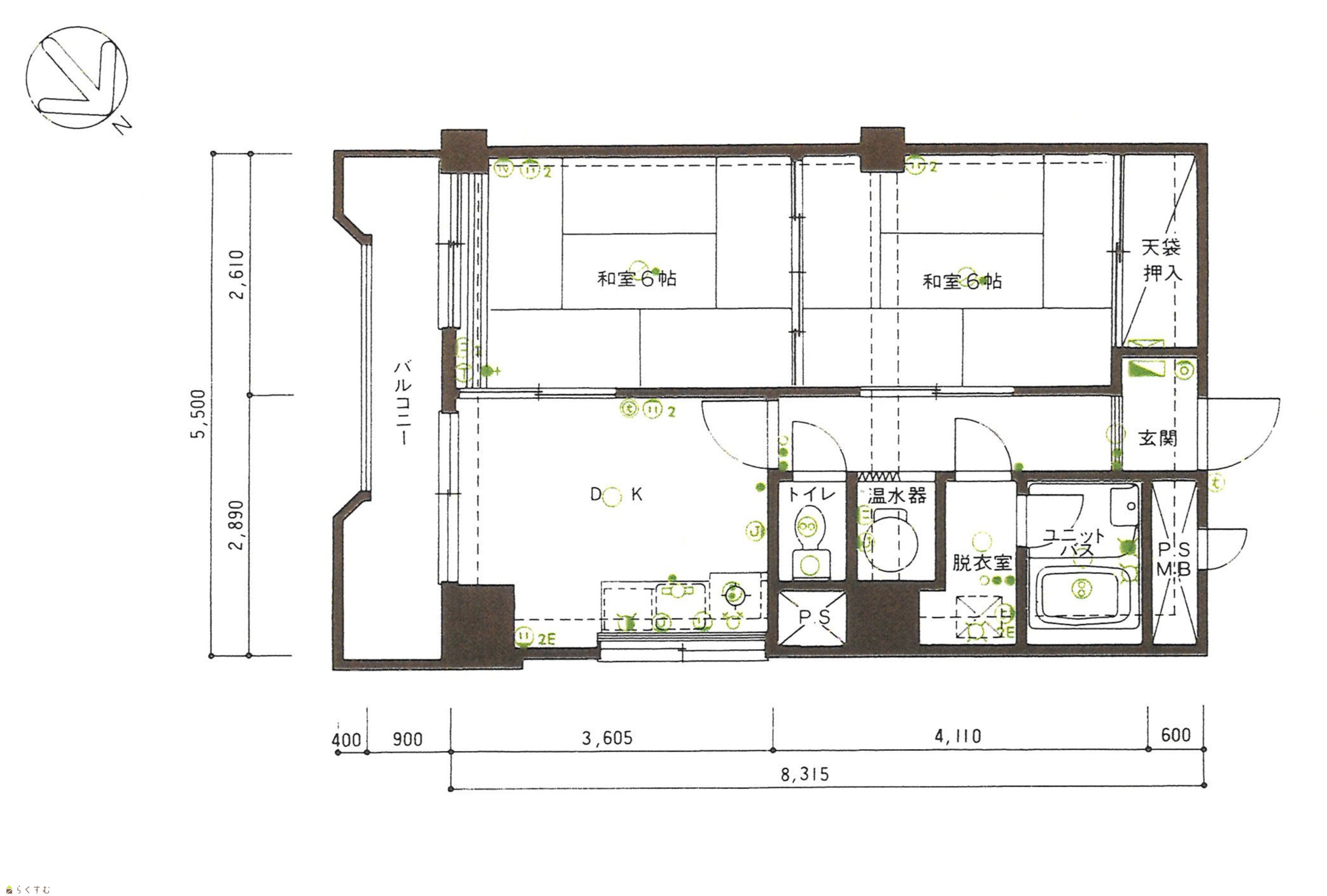 2DK (和室:6畳、6畳) 5.5 |