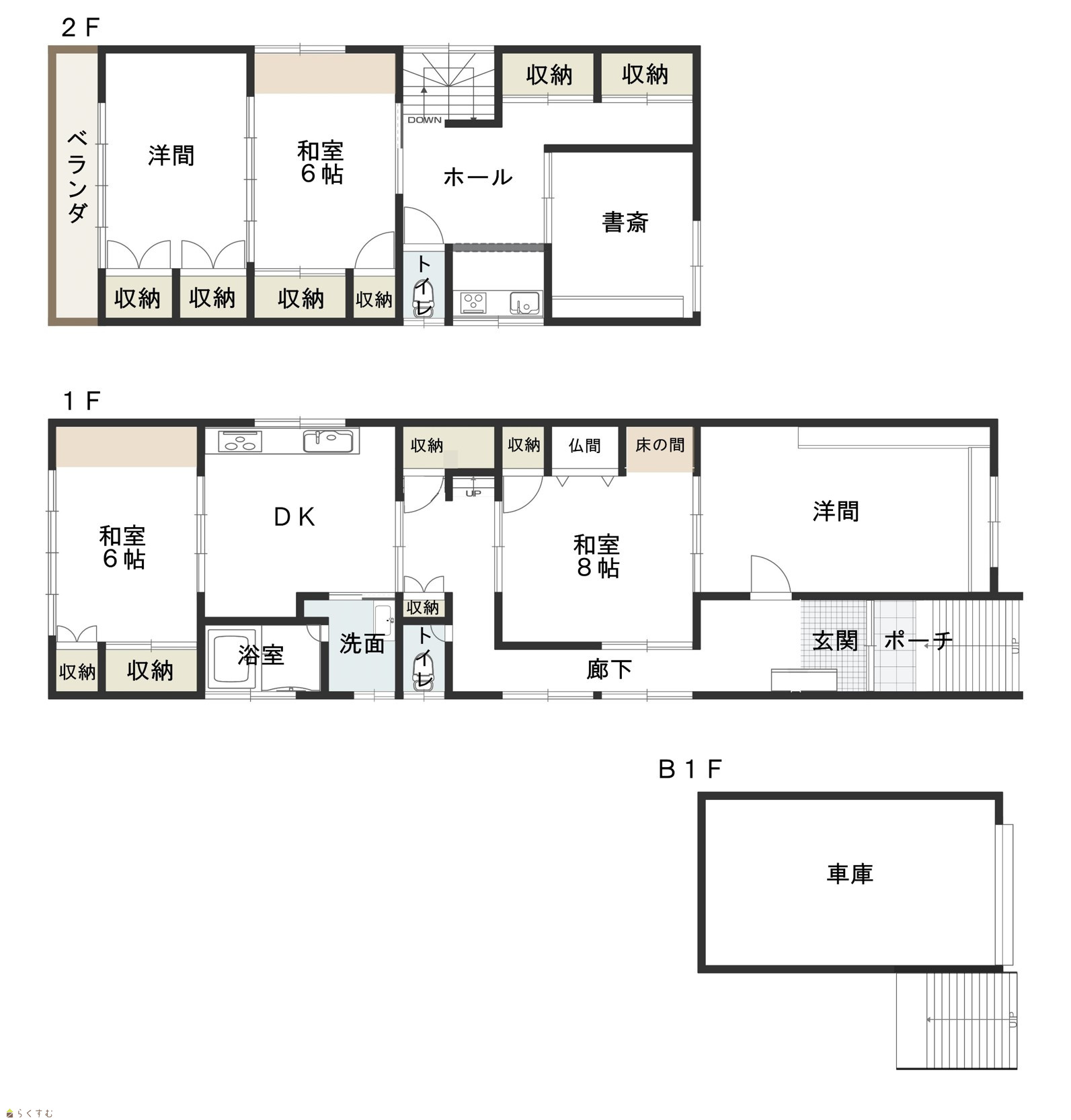 4LDK 1階床下に車庫有り |