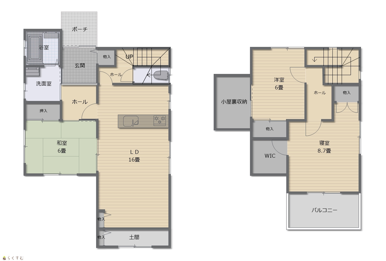 3LDK (和室:6畳) (洋室:8.7、6) LDK16 |