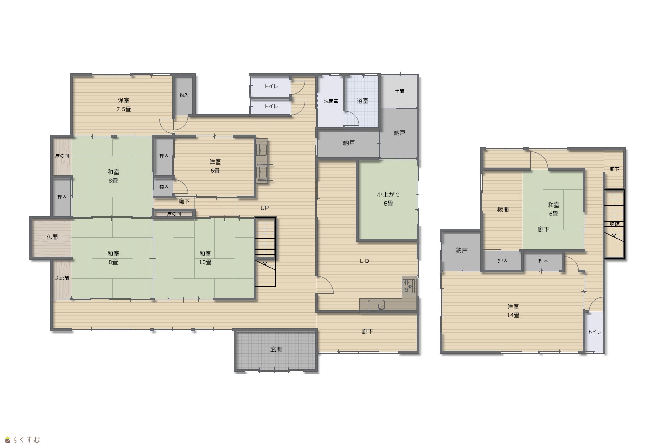 7LDK (和室:6畳、8畳、8畳、10畳、6畳) (洋室:6、7.5、14) LDK15 |
