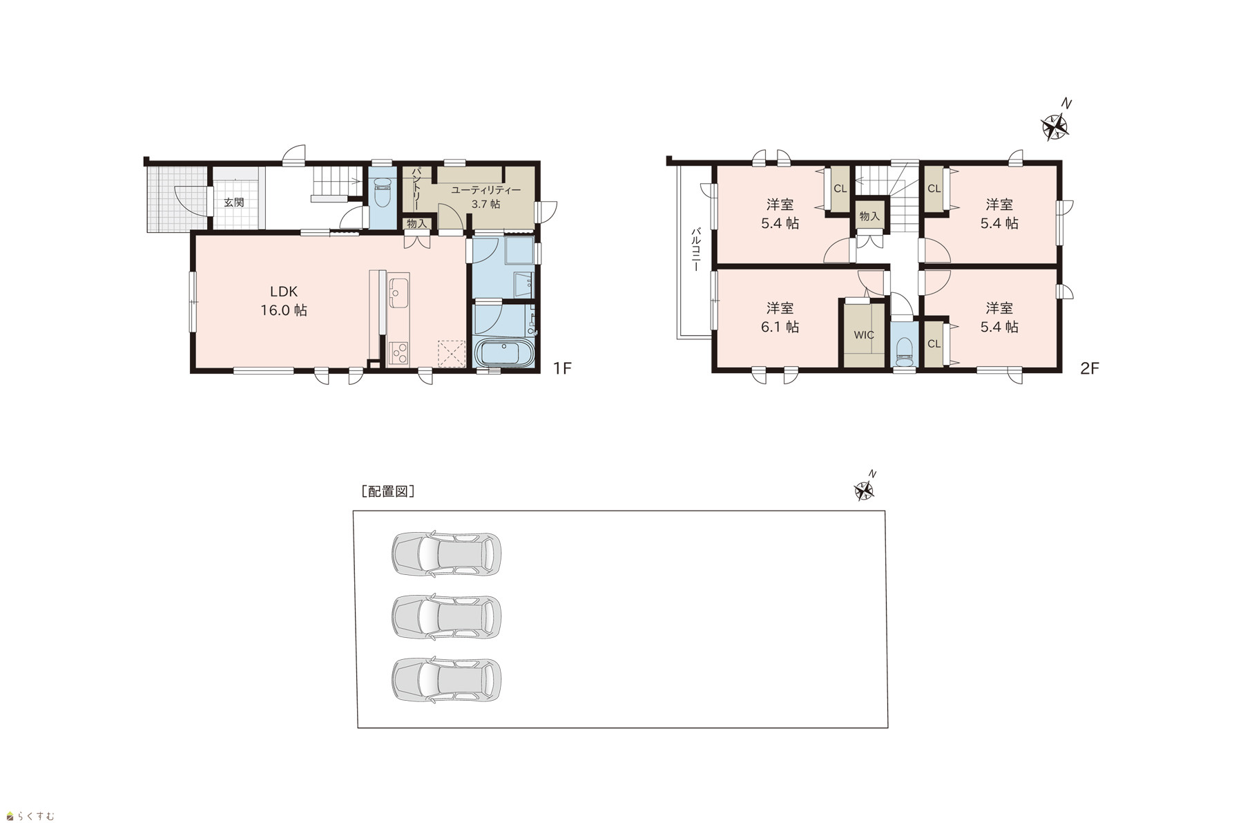 間取り 4LDK (洋室:6.1、5.4、5.4、5.4)