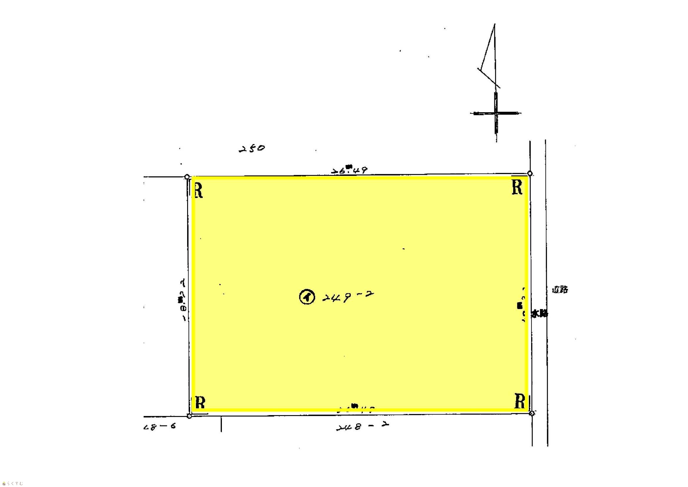 | 形状 | 間口 18.72m × 奥行 26.49m | 道路 | 東側9.1m 三条市道 |