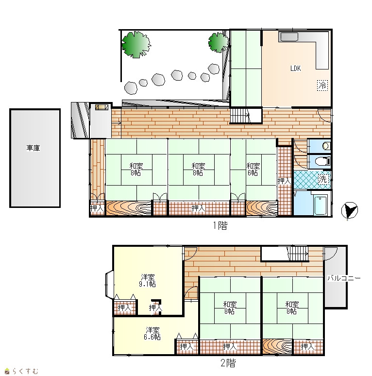 | 間取り | 7LDK (和室:8畳、8畳、6畳、8畳、8畳) (洋室:6.6、9.1) | ||