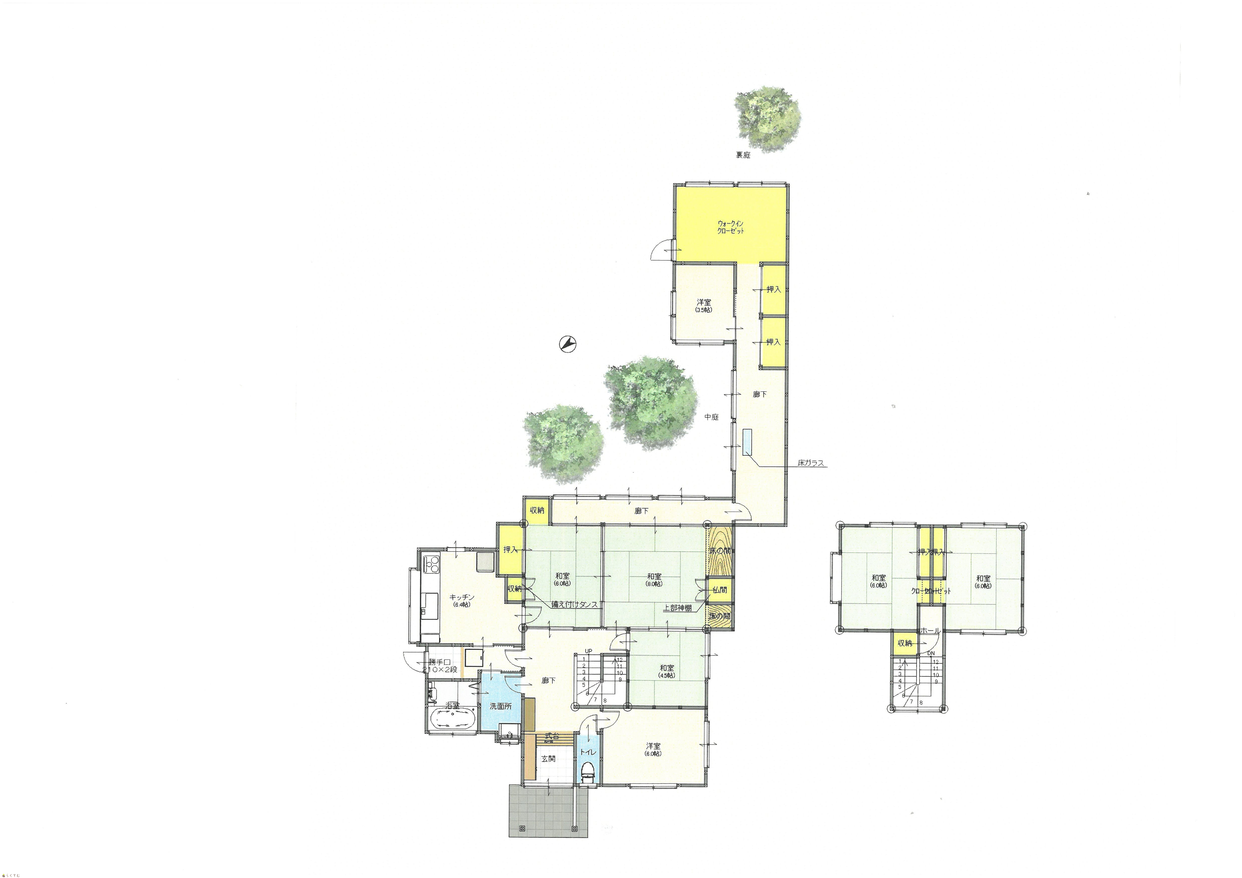 | 間取り | 7K (和室:6畳、4.5畳、8畳、6畳、6畳) (洋室:6、3.5) | ||