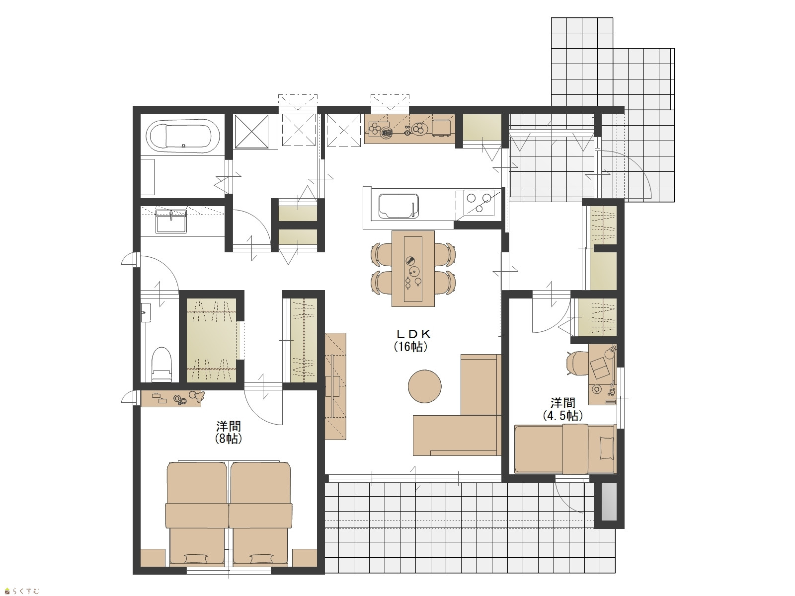 2LDK (洋室:8、4.5) LDK16 |