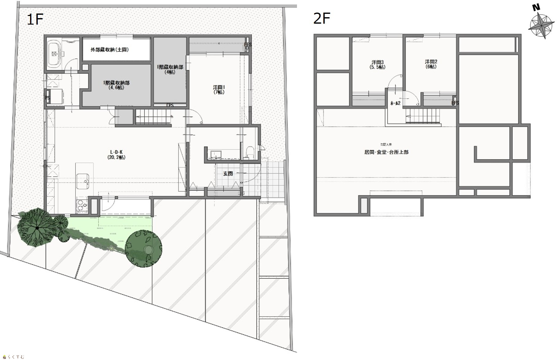3LDK (洋室:7、6、5.5) LDK20.2帖 |