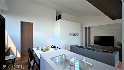 R8年4月完成予定!≪事前の見学予約でQUOカード3,000円分プレゼント!≫ ・木目天井材による内と外をつなげる空間設計 ・センチュリーモノコック構造が生み出す『KURAⓇ』と3.5m高天井 ・人気のニッチ造作や独立ワイド洗面化粧台、家事らくアイテム『かん太くん』も設置済