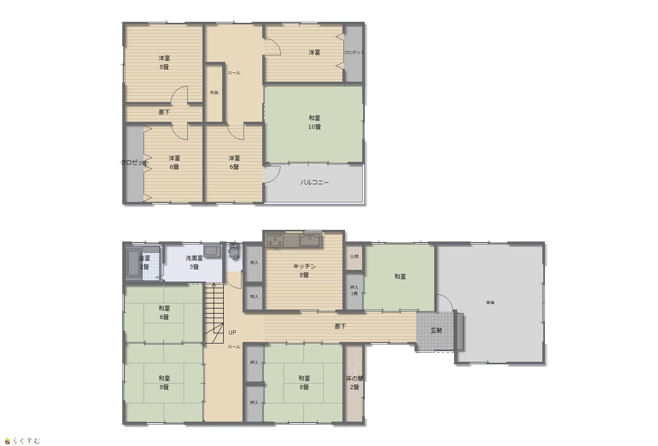 9DK (和室:6.0畳、8.0畳、8.0畳、6.0畳、10.0畳) (洋室:6.0、6.0、8.0) DK8 |