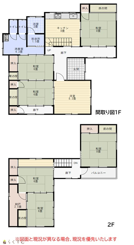 7DK (和室:8畳、6畳、6畳、8畳、6畳、6畳) (洋室:8.3、8.3) DK8 |