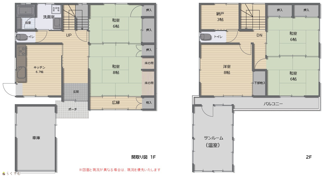 5DK (和室:8畳、6畳、6畳、6畳) (洋室:8) DK6.7+++++ |