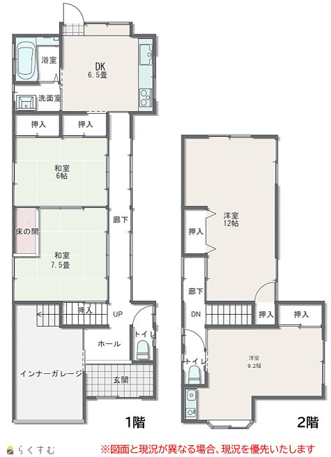 4DK (和室:7.5畳、6畳) (洋室:12、9.2) 6.5DK インナーガレージ |