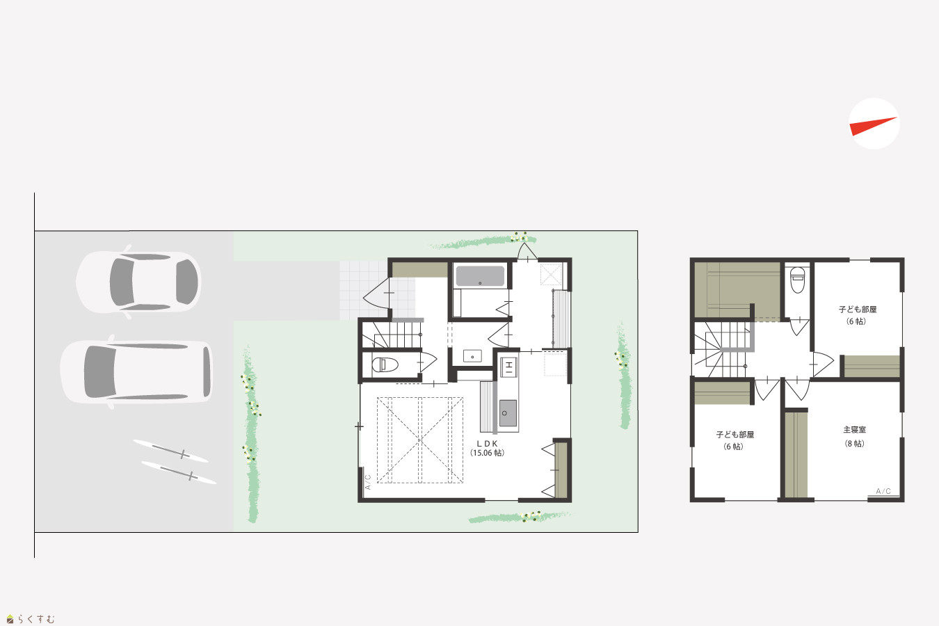 | 建物面積 | 1階 44.71㎡/ 2階 46.37㎡/ 計 91.08㎡ /27.55坪 | ||