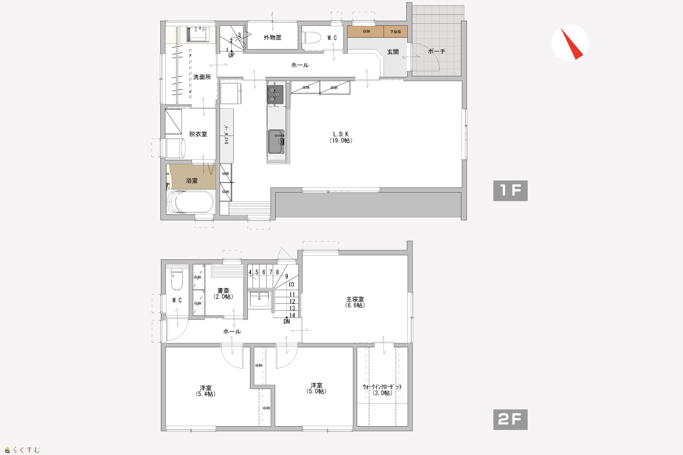 | 建物面積 | 1階 54.65㎡/ 2階 44.15㎡/ 計 98.8㎡ /29.88坪 | ||