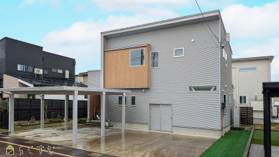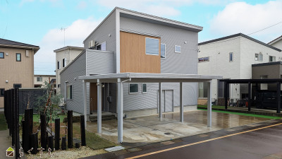 原信花園店まで徒歩5分!豊田小学校まで徒歩10分!駐車スペース4台分。2台分のカーポート、外部収納あります!前面道路は7m道路で消雪パイプ有!高田建築設計事務所設計のデザイン住宅!