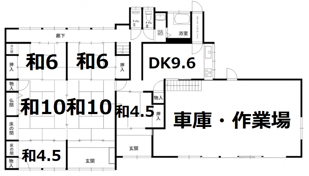 11DK (和室:10.0畳、10.0畳、6.0畳、6.0畳、4.5畳、4.5畳、10.0畳、6.0畳、6.0畳、4.0畳) (洋室:6.0) DK9.6 |