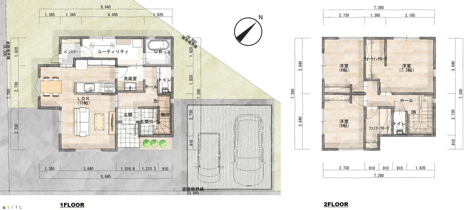 | 建物面積 | 1階 52.02㎡/ 2階 49.68㎡/ 計 101.7㎡ /30.76坪 | ||