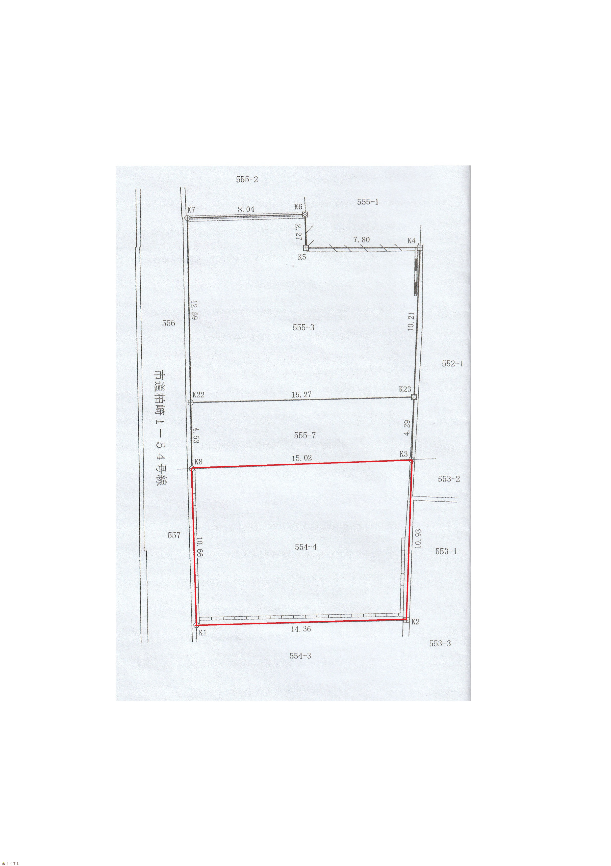 | 形状 | 間口 10.66m × 奥行 14.36m | 道路 | 柏崎1-54号線 |
