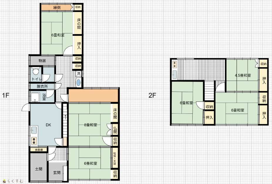 | 間取り | 6DK (和室:6畳、8畳、6畳、6畳、6畳、4.5畳) | ||