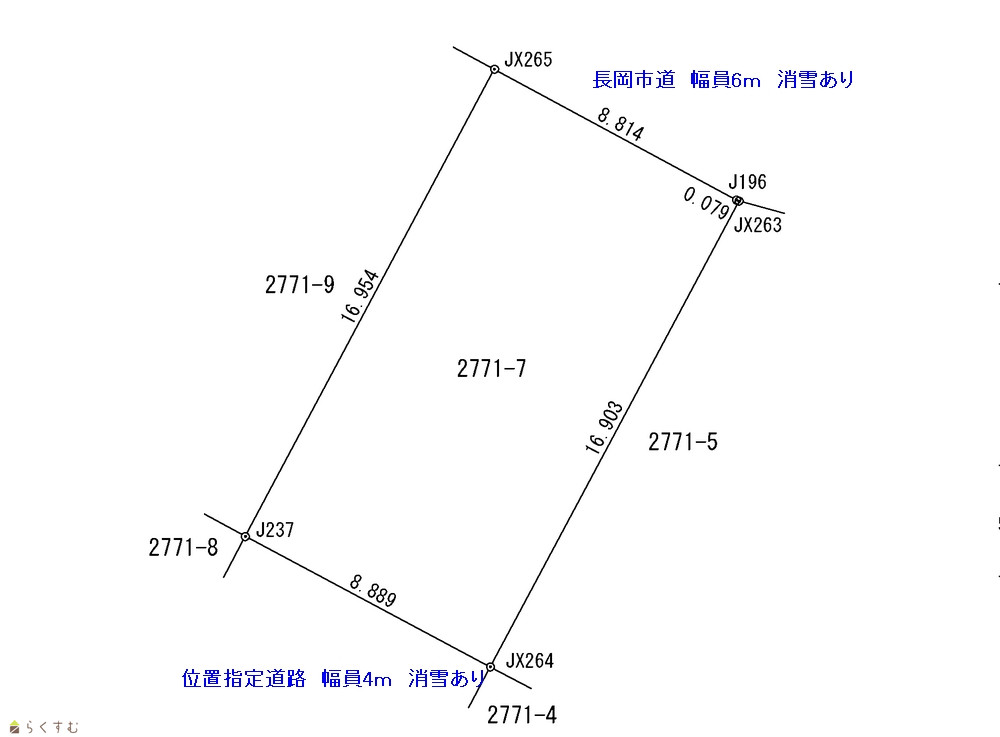 | 備考 | 〇解体更地渡し 〇消雪組合費(年6,000円)令和6年12月現在 〇2方道路 〇位置指定道路部分(2771番6 16㎡)は無償譲渡 | ||