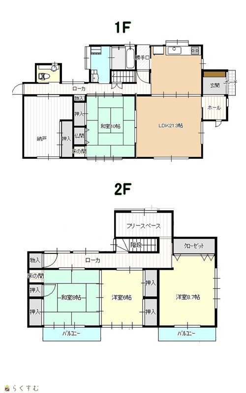 4LDK (和室:10畳、8畳) (洋室:6、8.7) LDK21.3 |