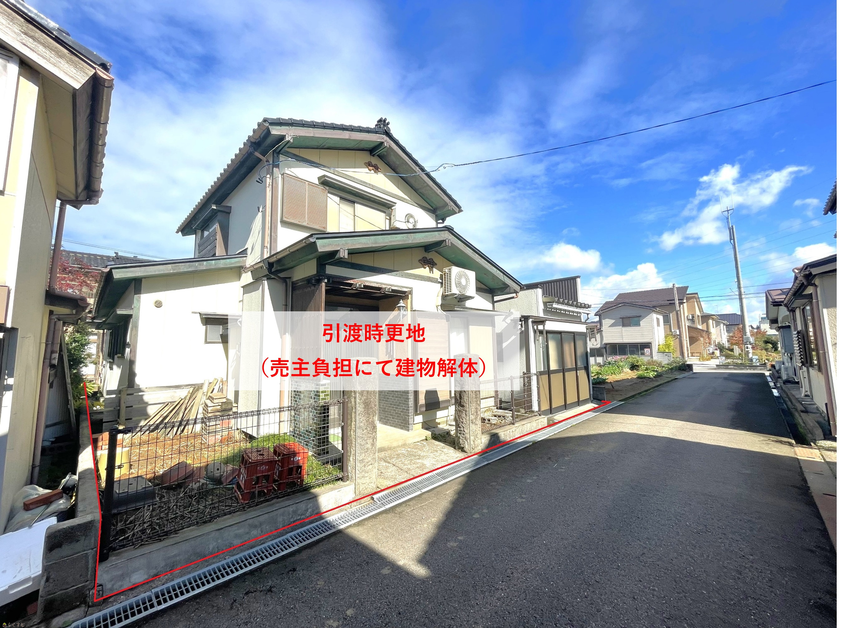 | 備考 | ・価格改定630万円→500万円 (旧価格公表日:令和6年11月5日)(新価格公表日:令和7年9月9日) ・引渡時更地となります。(売主負担にて建物解体となります。) ・前面道路は位置指定道路となり、柏崎市の除雪道路ではありません。 ・敷地北西側部分は、本物件と水路を繋いでいる敷地となり、現状は雨水配管が設置されております。 ・建物付き(現況)での売買も可能です。 |