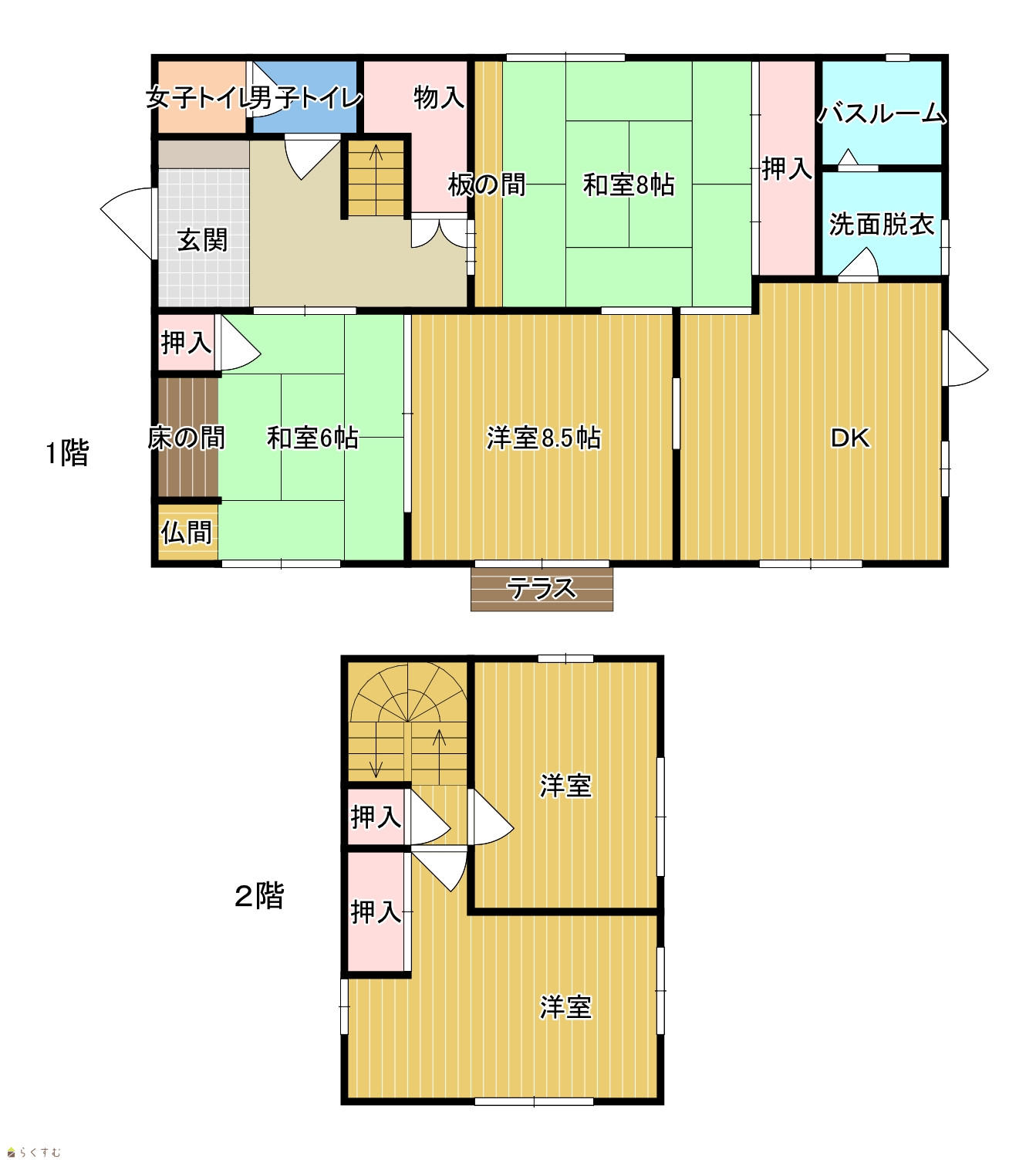 5DK (和室:8畳、6畳) (洋室:9、8.5、6) DK |