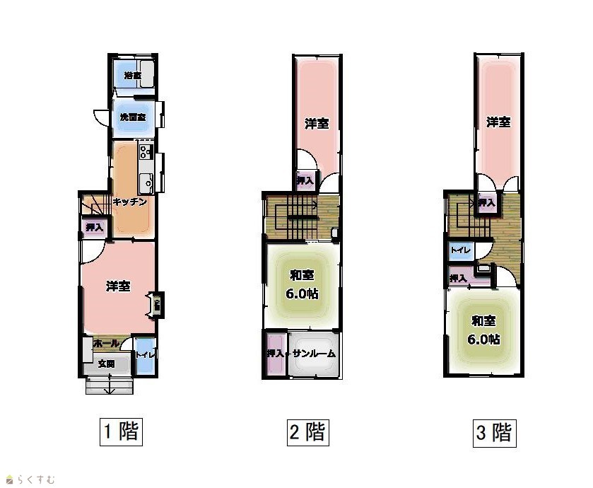 | 建物面積 | 1階 32.52㎡/ 2階 32.52㎡/ 3階 32.52㎡/ 計 97.56㎡ /29.51坪 | ||