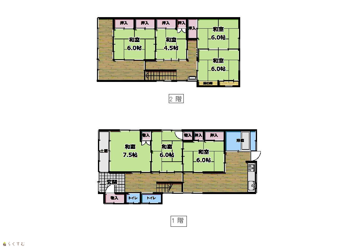 | 間取り | 7DK (和室:7.5畳、6畳、6畳、6畳、6畳、6畳、4.5畳) | ||