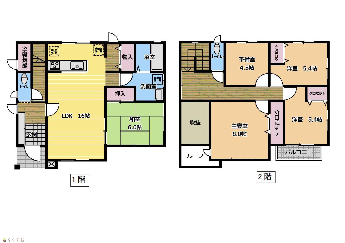 4LDK (和室:6畳) (洋室:8、5.4、5.4) LDK 16 S 4.5(予備室) |
