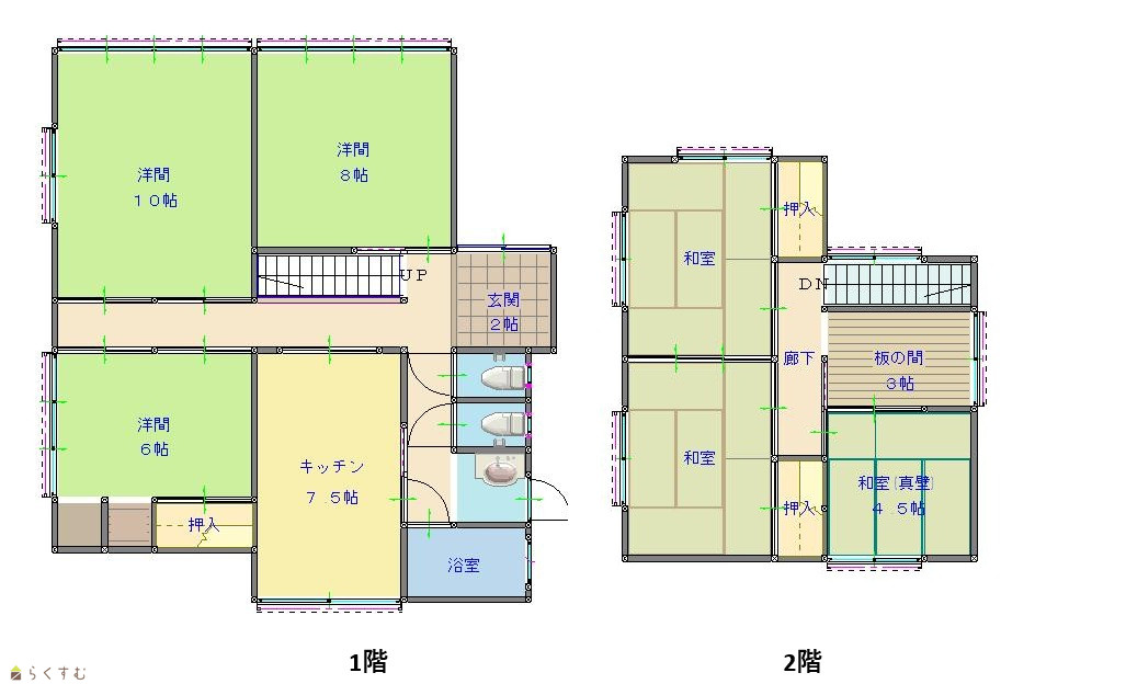 6DK (和室:6畳、6畳、4.5畳) (洋室:10、8、6) DK7.5 |