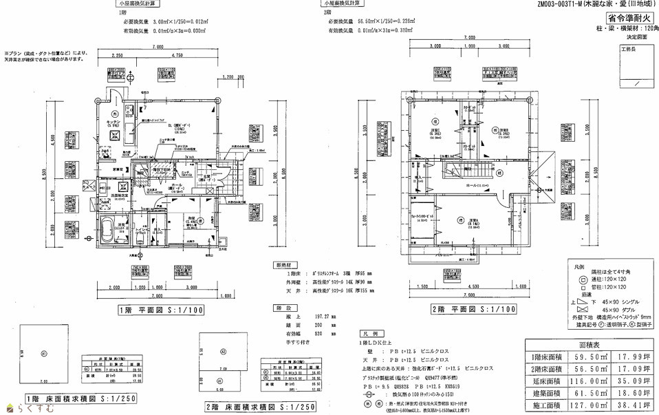 | 建物面積 | 1階 59.5㎡/ 2階 56.5㎡/ 計 116㎡ /35.09坪 | ||