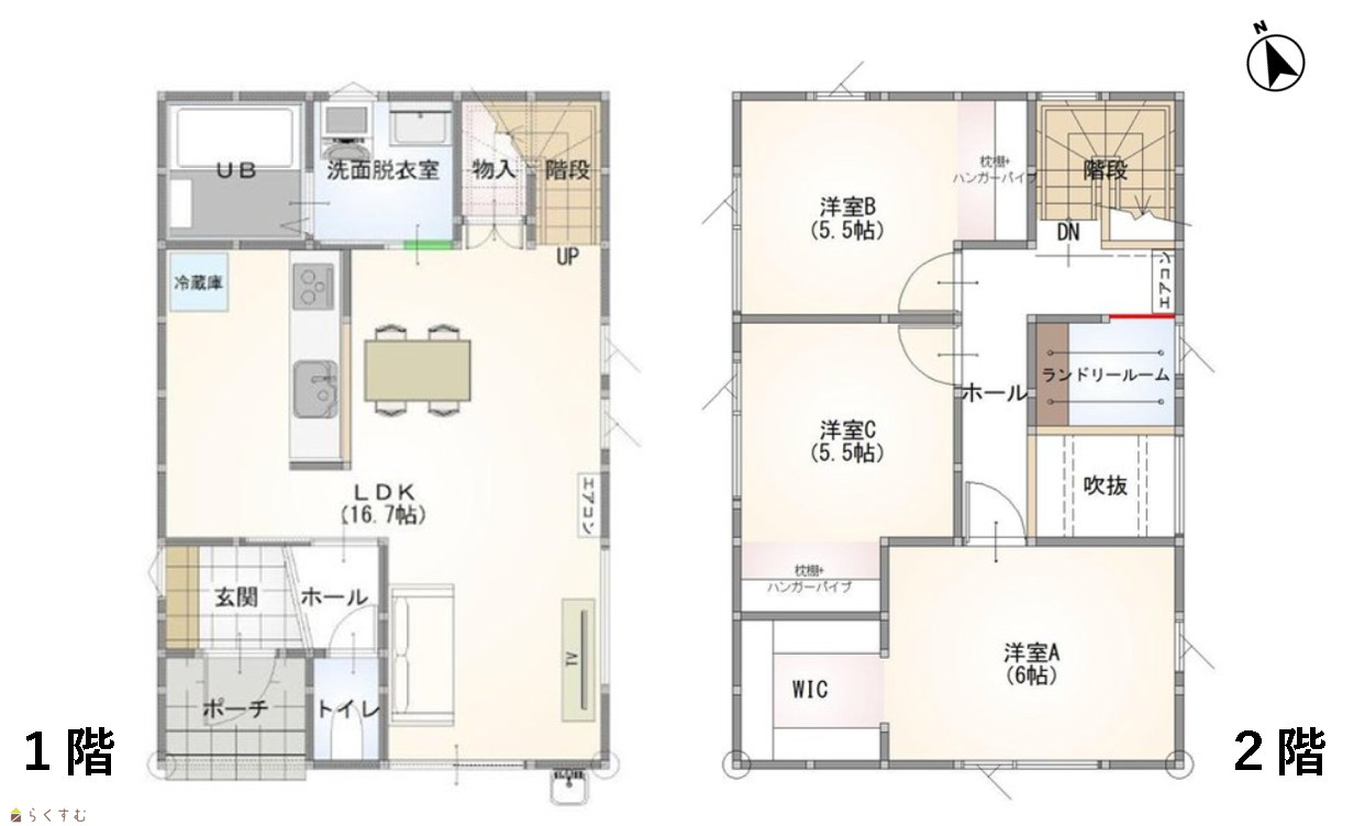 3LDK (洋室:6、5.5、5.5) LDK16.7 ランドリールーム1.5帖 |