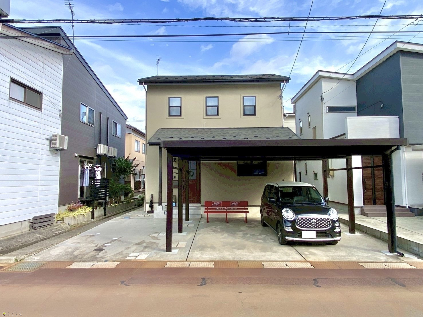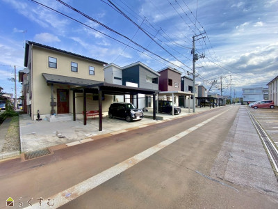 【2023年築・ヴィンテージモダンで家族にちょうどいい4LDKS】 ■前面道路に消雪パイプ完備 ■駐車3台可能、2台分のカーポート付き ■フリースペース付き ■左岸バイパスまで車3分