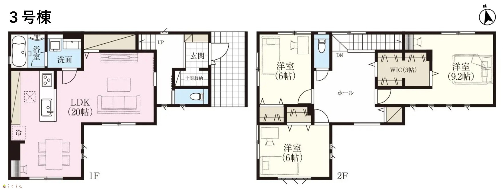 3LDK (洋室:9.2、6、6) LDK20 |