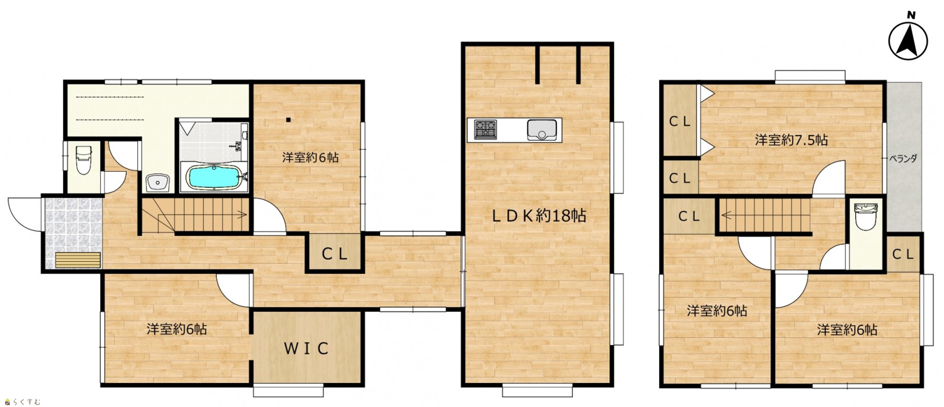 5LDK (洋室:7.5、6、6、6、6) LDK18 |