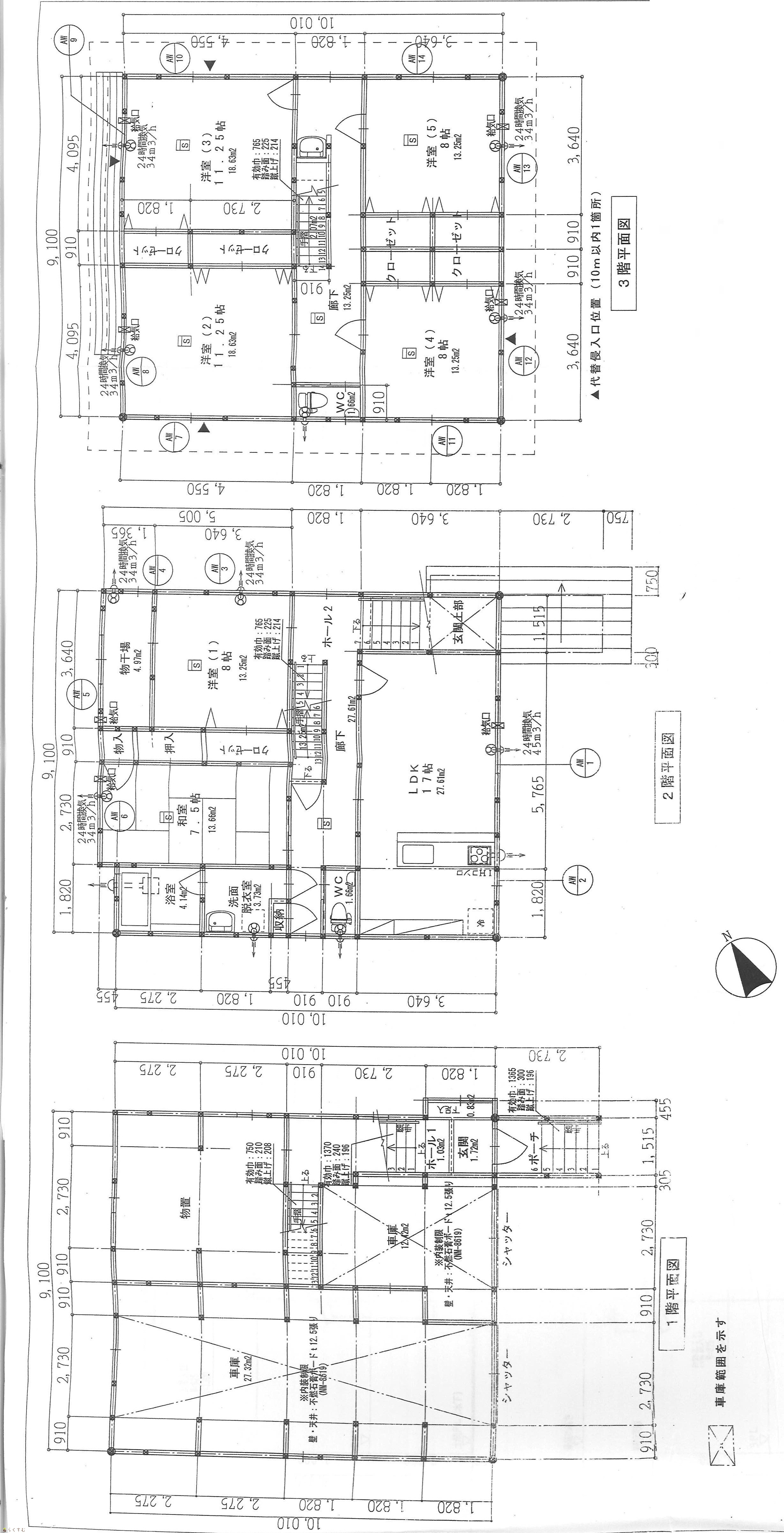 | 建物面積 | 1階 91.91㎡/ 2階 94.4㎡/ 3階 91.09㎡/ 計 277.4㎡ /83.91坪 | ||