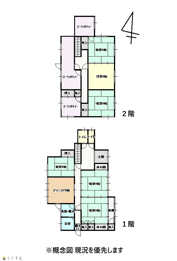 | 間取り | 8DK (和室:8畳、8畳、8畳、8畳、6畳) (洋室:8) | ||
