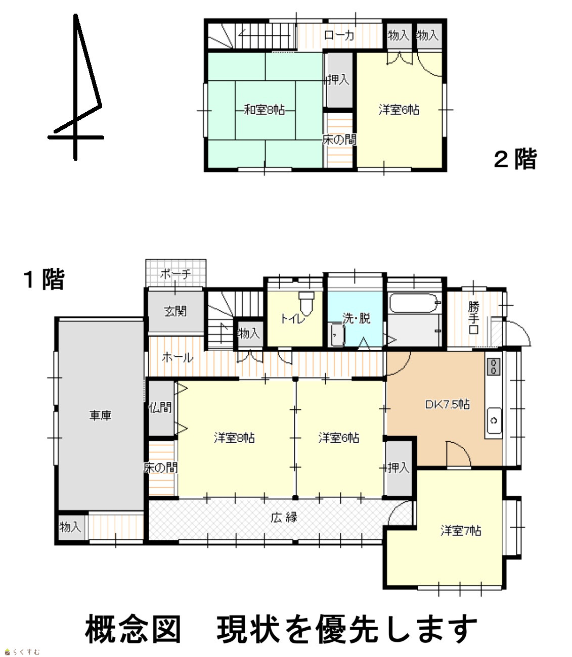 5DK (和室:8畳) (洋室:6、6、7、8) DK7.5 |