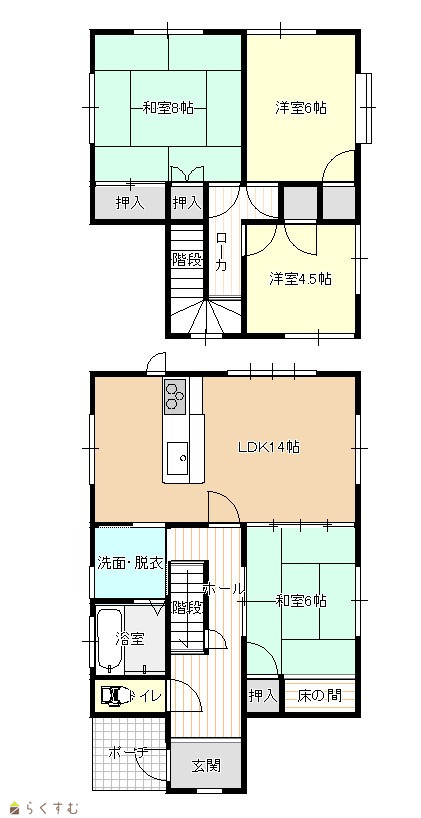 4LDK (和室:8畳、6畳) (洋室:6、4.5) LDK14 |